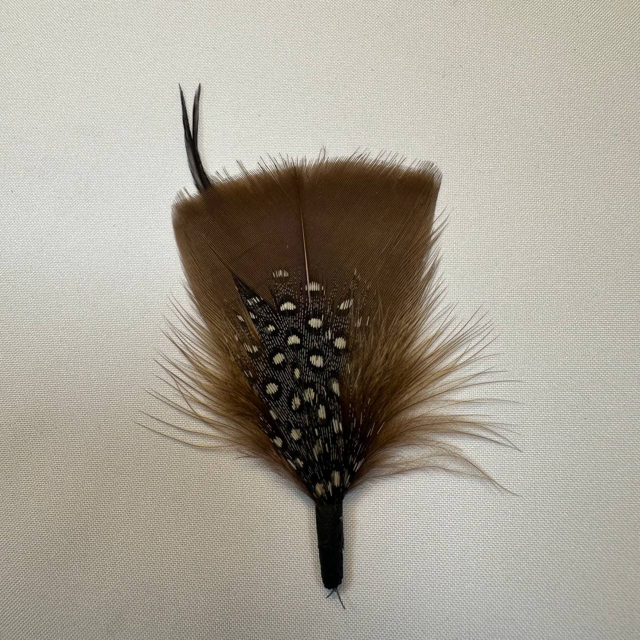 Un toque de elegancia rústica para tu sombrero. El adorno “Tierra Noble” es una composición de plumas naturales en tonos tierra, que combina la calidez del color marrón con el patrón gráfico de la pluma de gallina de Guinea. Es el accesorio ideal para quien busca un detalle de distinción discreto y conectado con la naturaleza.