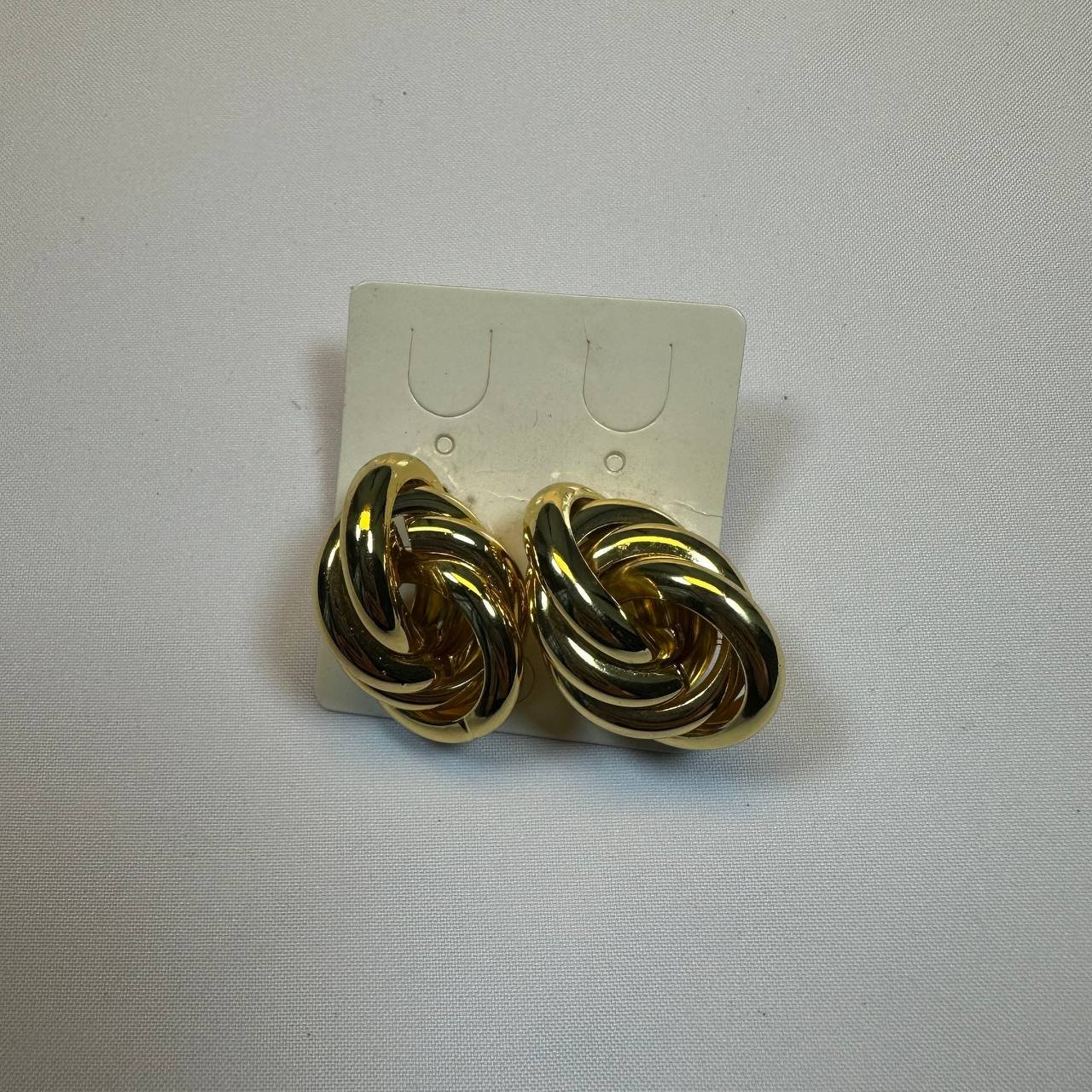 Un toque de elegancia atemporal para realzar cualquier look. Estos aretes tipo topo presentan un sofisticado diseño de nudo entrelazado con un brillante acabado en tono dorado. Perfectos para añadir un toque de distinción y clase a tu estilo diario o a un atuendo de noche.