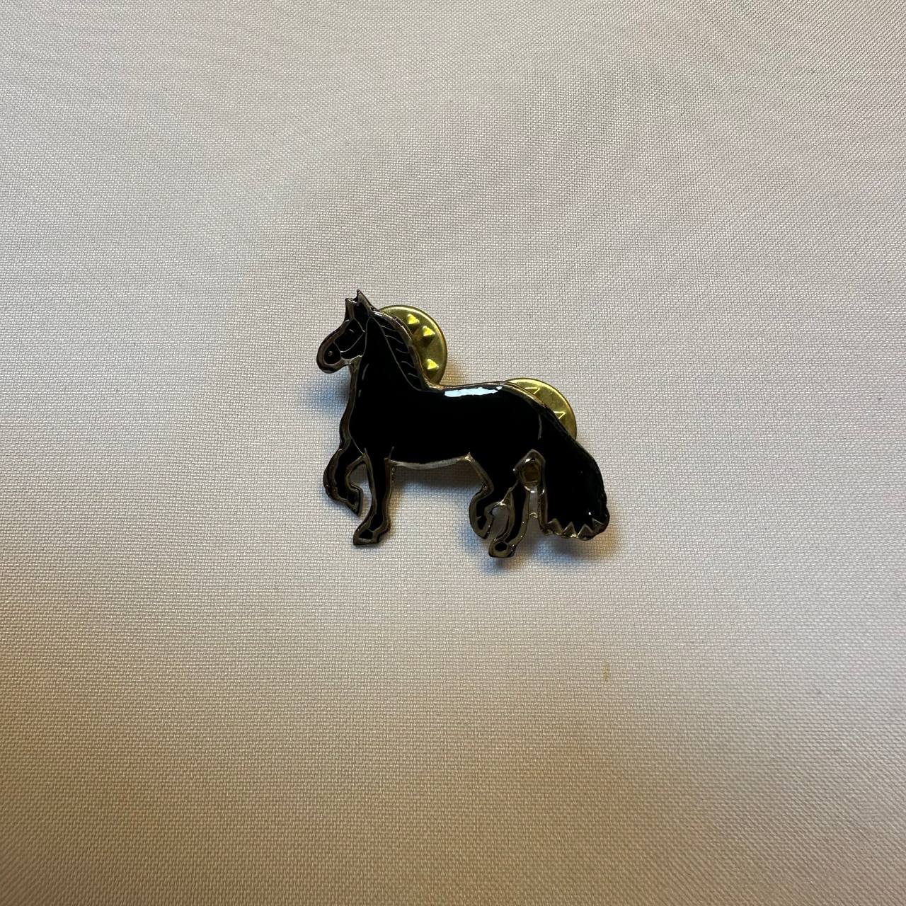 Pin metálico negro con la figura de un elegante caballo. Un accesorio sofisticado para los amantes de la equitación.